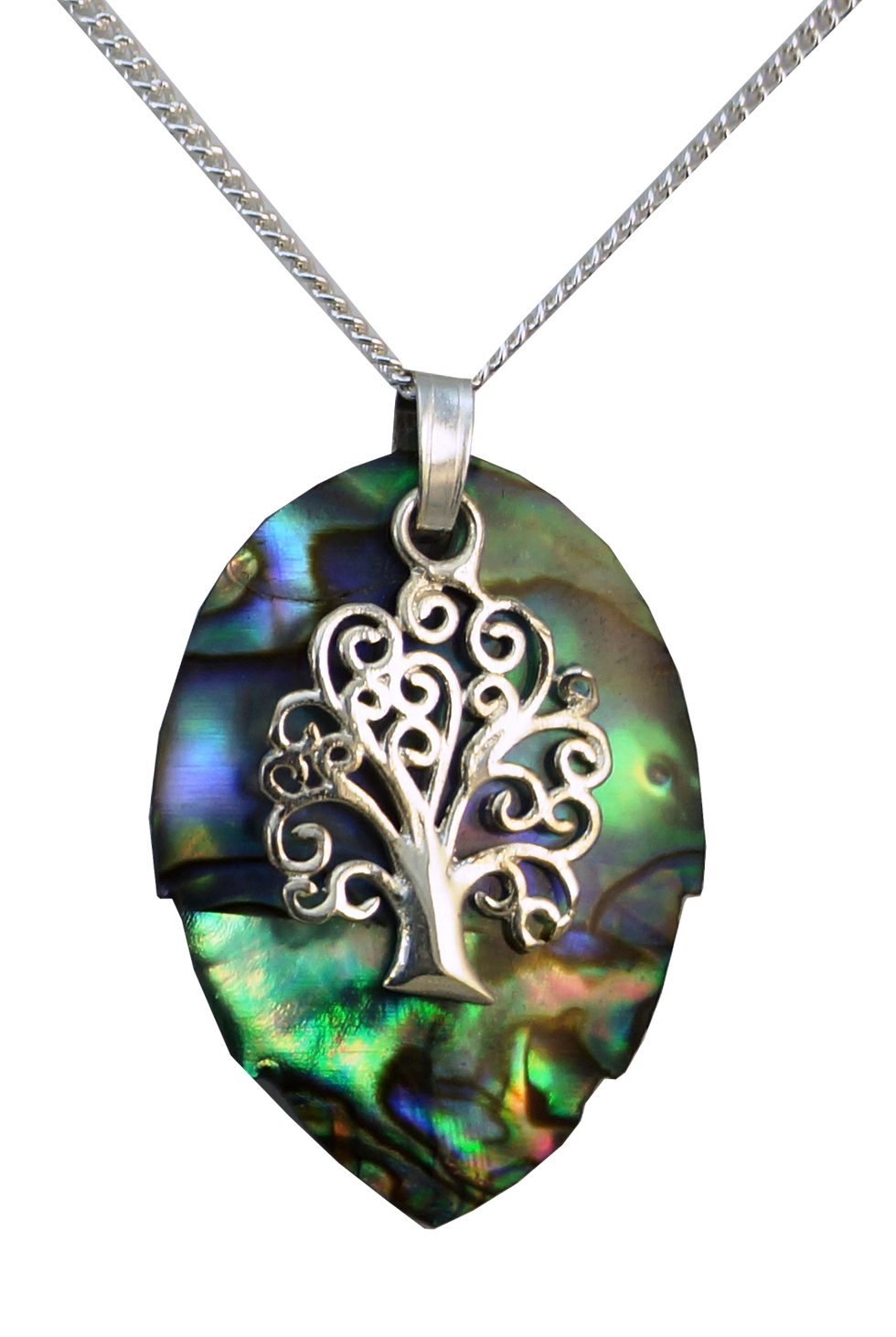 Round Paua Leaf Pendant with Tree of Life Overlay